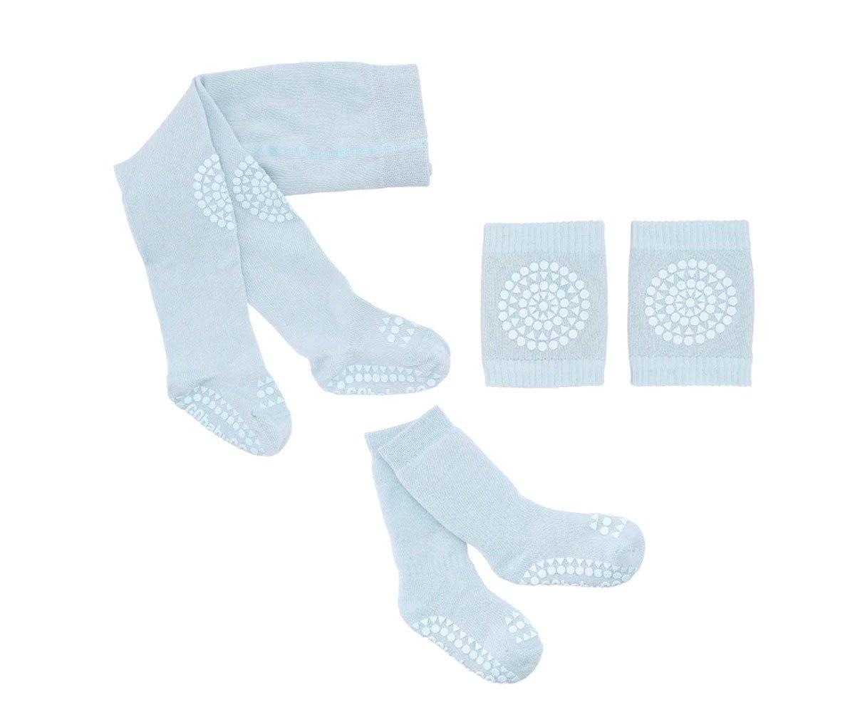 Este kit de gateo se compone de un par de calcetines antideslizantes de algodón grueso, unos leotardos de gateo y un par de rodilleras de gateo.