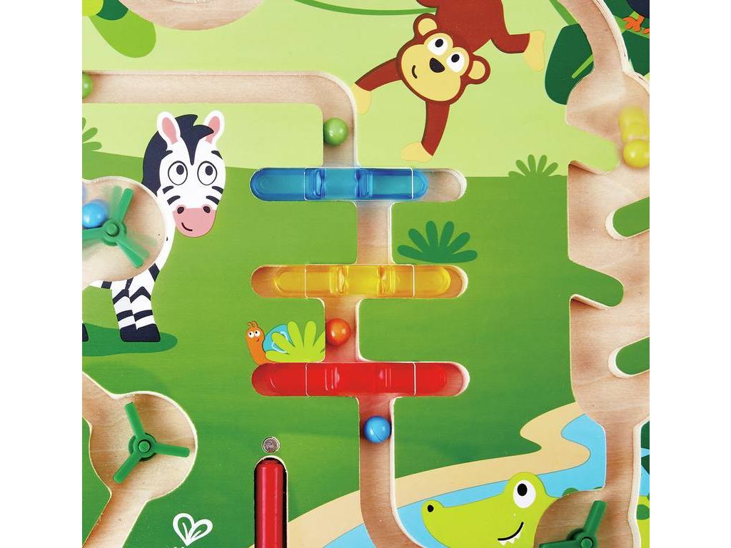 Este divertido laberinto magnético es un modo muy entretenido para que los peques exploren la jungla y aprendan sobre nuestros amigos los animales salvajes. Las ilustraciones son monísimas, van a encontrarse con un mono, león, cocodrilo, elefante… ¡y muchos más! Con este laberinto, ¡los peques podrán inclinar el tablero o usar la varita para guiar las bolas por los pasadizos del laberinto, sus esquinas y puertas giratorias!
