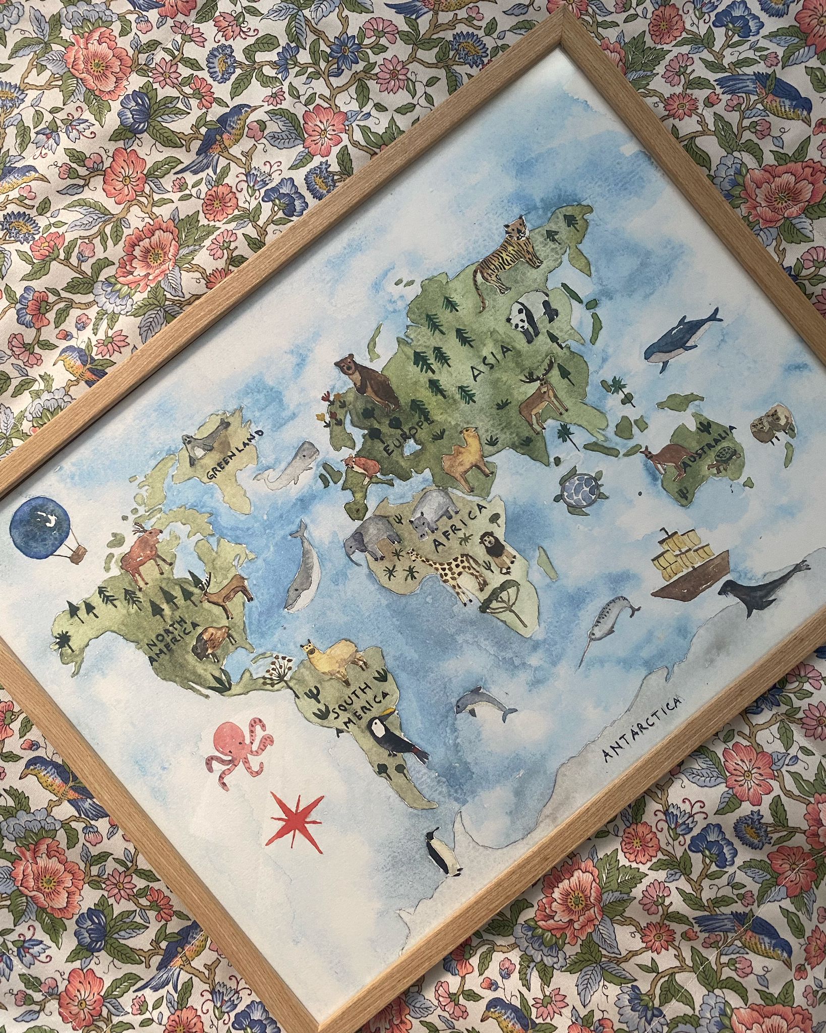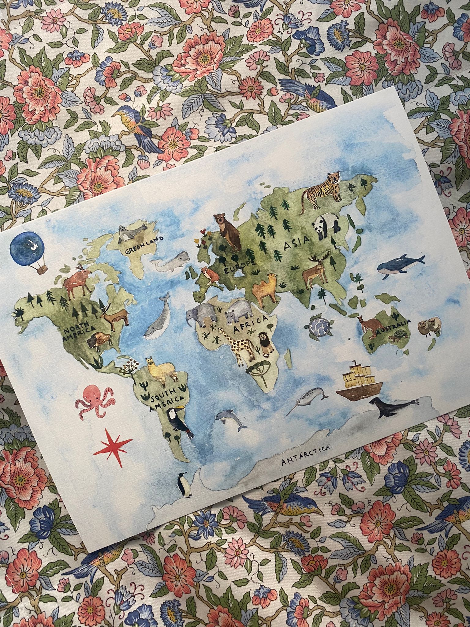 Lámina Mapa Mundi Animales, ideal parque los más pequeños conozcan los animales del mundo.