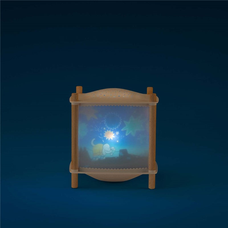 Cuando enciendes la linterna, una escena cobra vida ante los ojos asombrados de tu hijo, sumergiendo su habitación en una atmósfera tenue. Con la opción Proyector de estrellas, su habitación estará salpicada de un cielo estrellado. Una suave música, cuyo volumen es ajustable, podrá acompañarle en su sueño: ya sea una de las 4 nanas pregrabadas, o su canción infantil favorita o la música reproducida desde su smartphone o tablet (función de conexión inalámbrica). Por último, en caso de pesadillas o terrores nocturnos, la linterna se vuelve a encender automáticamente para calmar a tu hijo gracias a su detector de llanto.