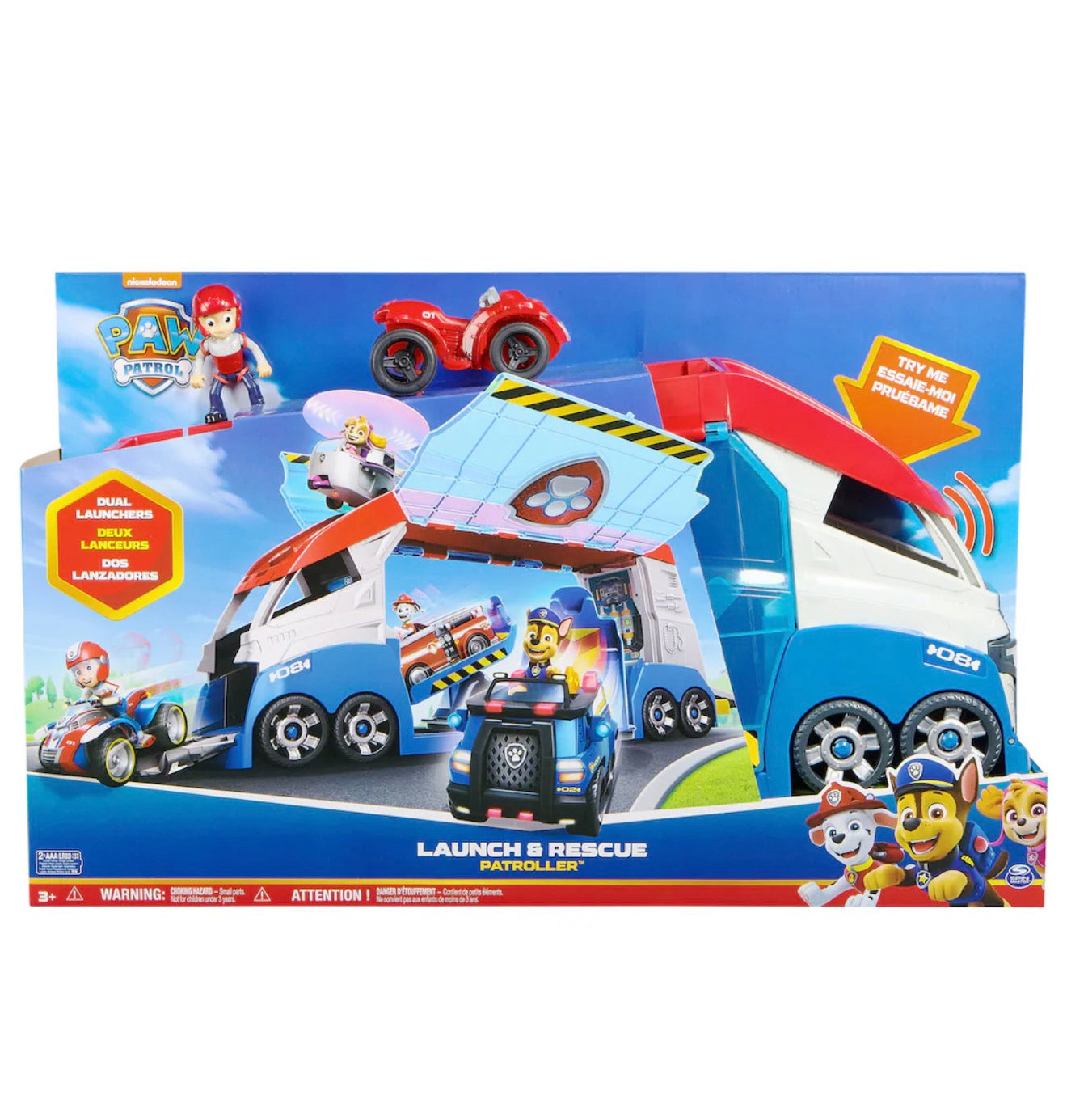 Embárcate en misiones de rescate repletas de acción con el emocionante vehículo Launch & Rescue Patroller, que incluye a Ryder y su vehículo todoterreno, con puertas transformables, lanzadores de vehículos dobles y sonidos realistas para una experiencia inmersiva. Cuando surjan problemas, prepárate para salir al rescate. Con espacio para seis figuras y vehículos de la Patrulla Canina, el Launch & Rescue Patroller está listo para afrontar cualquier misión. El Launch & Rescue Patroller mide 55,8 cm de largo y 25,4 cm de alto, por lo que puede albergar hasta seis vehículos y figuras de acción de PAW Patrol al mismo tiempo (las figuras y los vehículos adicionales se venden por separado).
