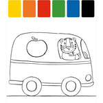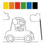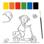 Este cuaderno de pintar incorpora una paleta de colores en cada una de sus hojas y un pincel. Solo hay que aplicar un poco de agua y pintar las ilustraciones como más te guste.