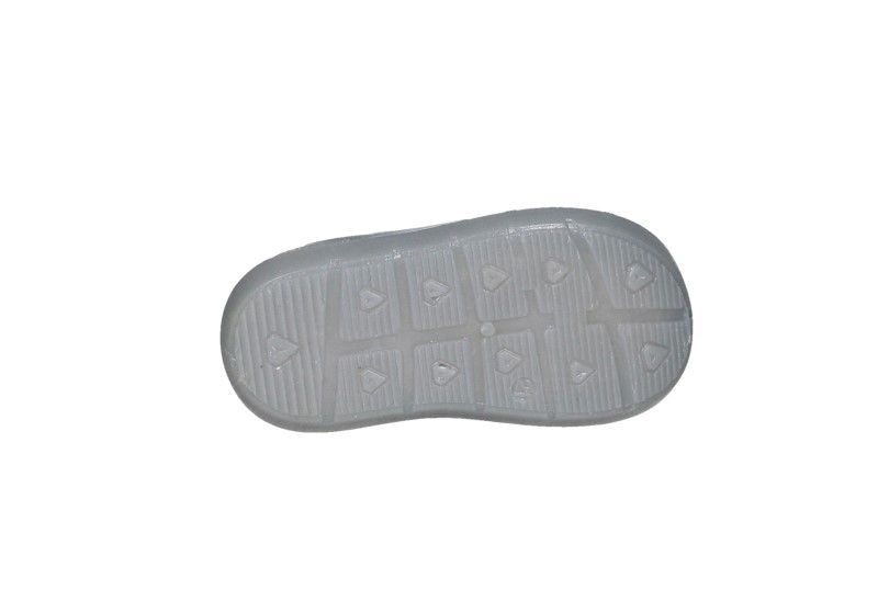 Sandalias para niños con cierre mediante tiras adherentes para facilitar el calce y autonomía de los más pequeños. Detalle de color en contraste en la plantilla y suela ligera antideslizante para un mayor agarre.