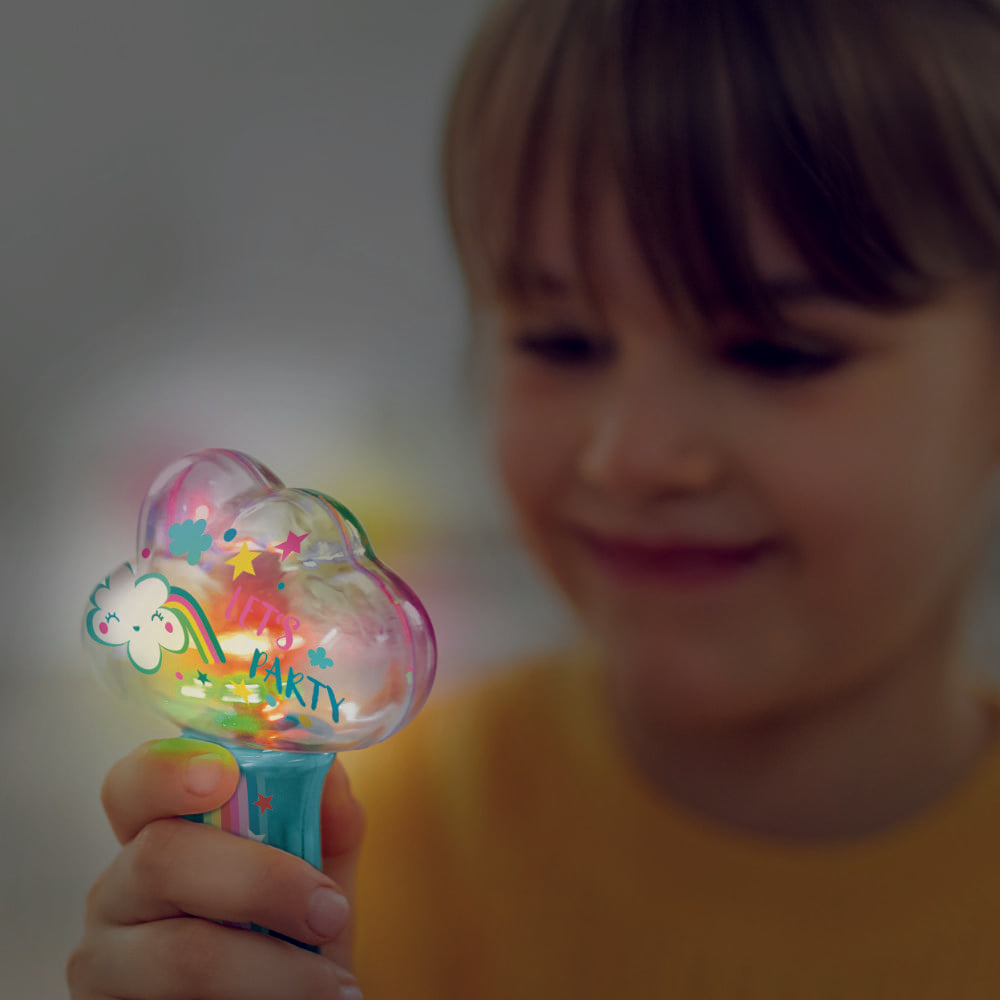Luz de mano disco rotativa para diversión en fiestas, conciertos o cumpleaños infantiles.