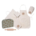 Ahora, los niños podrán parecer auténticos profesionales en la cocina con este set de chef, que incluye delantal, gorro de cocinero y un paño de cocina. Para hacer el juego aún más realista, también se incluye un rodillo de juguete. Todo viene en una práctica bolsa, fácil de guardar y transportar. Este set es el complemento perfecto para cocinitas y sets de repostería, permitiendo a los pequeños soñar con convertirse en chefs. Fabricado con materiales resistentes que soportan muchas horas de juego divertido.