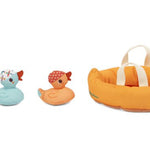 ¡Sumérgete en el baño con Mamá Pato y sus tres patitos! Mamá Pato flota en el agua y lleva a sus patitos en la espalda o los deja nadar libremente. Gracias a los imanes, los patitos flotan alegremente juntos. La asociación de colores y un número oculto hacen que este juguete de baño sea perfecto para horas de diversión, desde el primer baño hasta descubrimientos educativos.