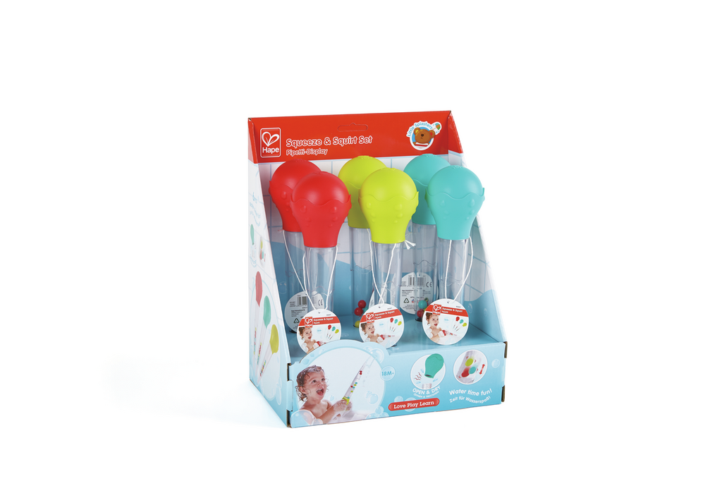 Empapa el agua del baño con esta divertida pipeta y observa cómo bailan las burbujas en ella. Luego puedes volver a apretar el globo para que el agua salga a chorros. ¡Diviértete probando!