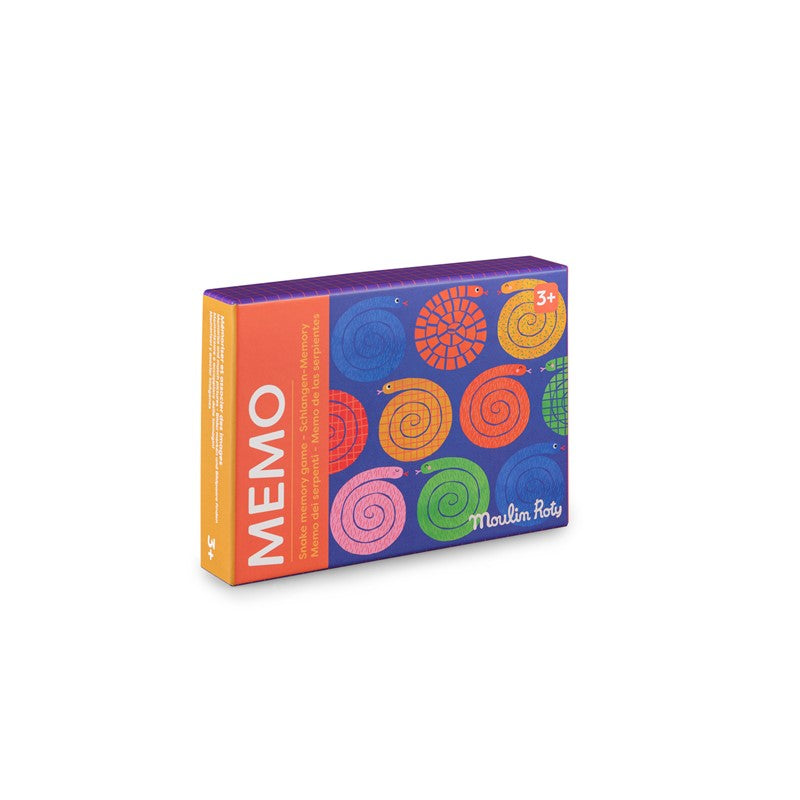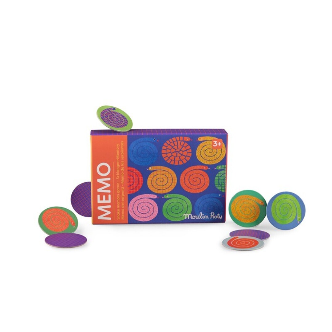 ¡Juego de observación y memoria de patrones y colores sobre el tema de las serpientes de la colección Les Toupitis de Moulin Roty para memorizar y unir imágenes!