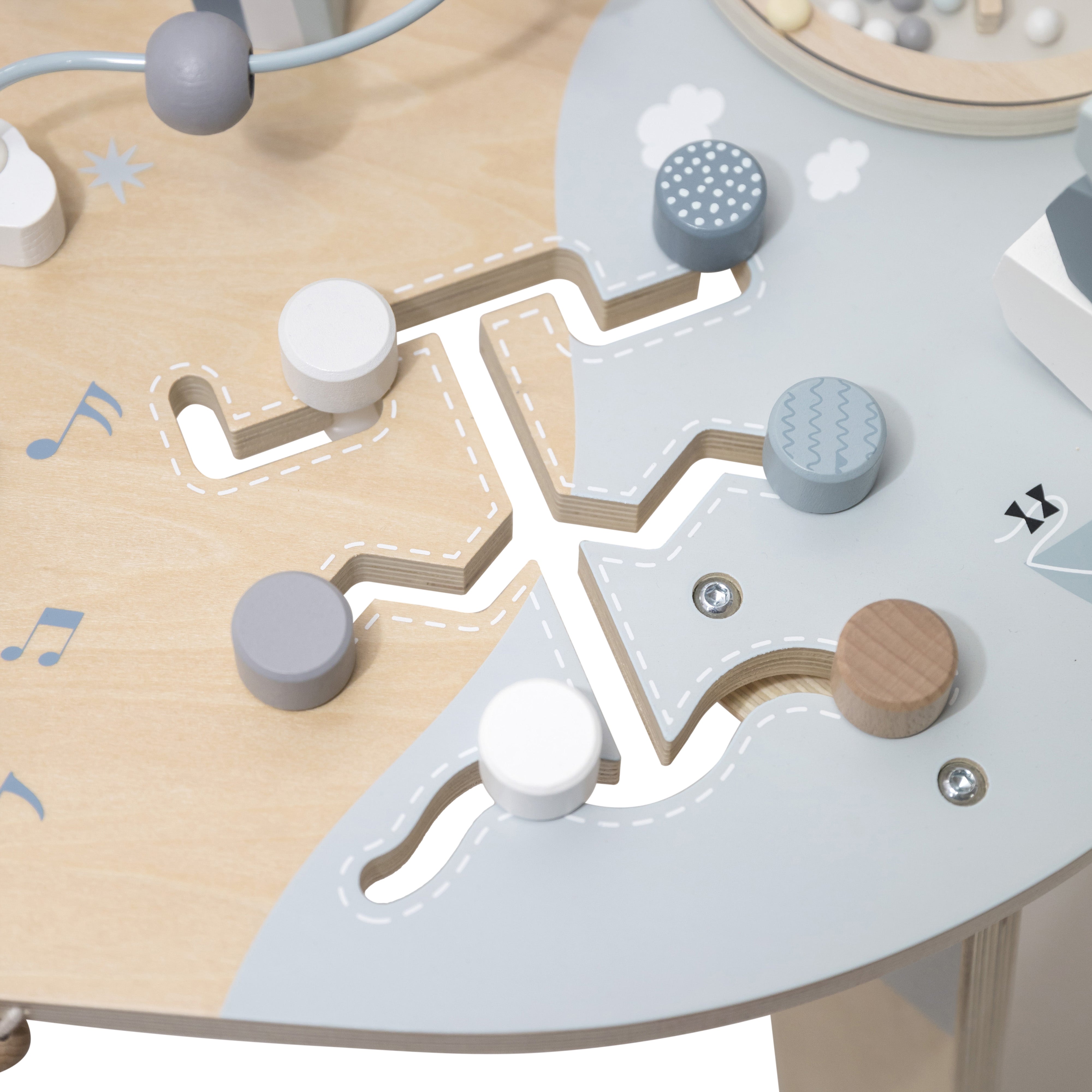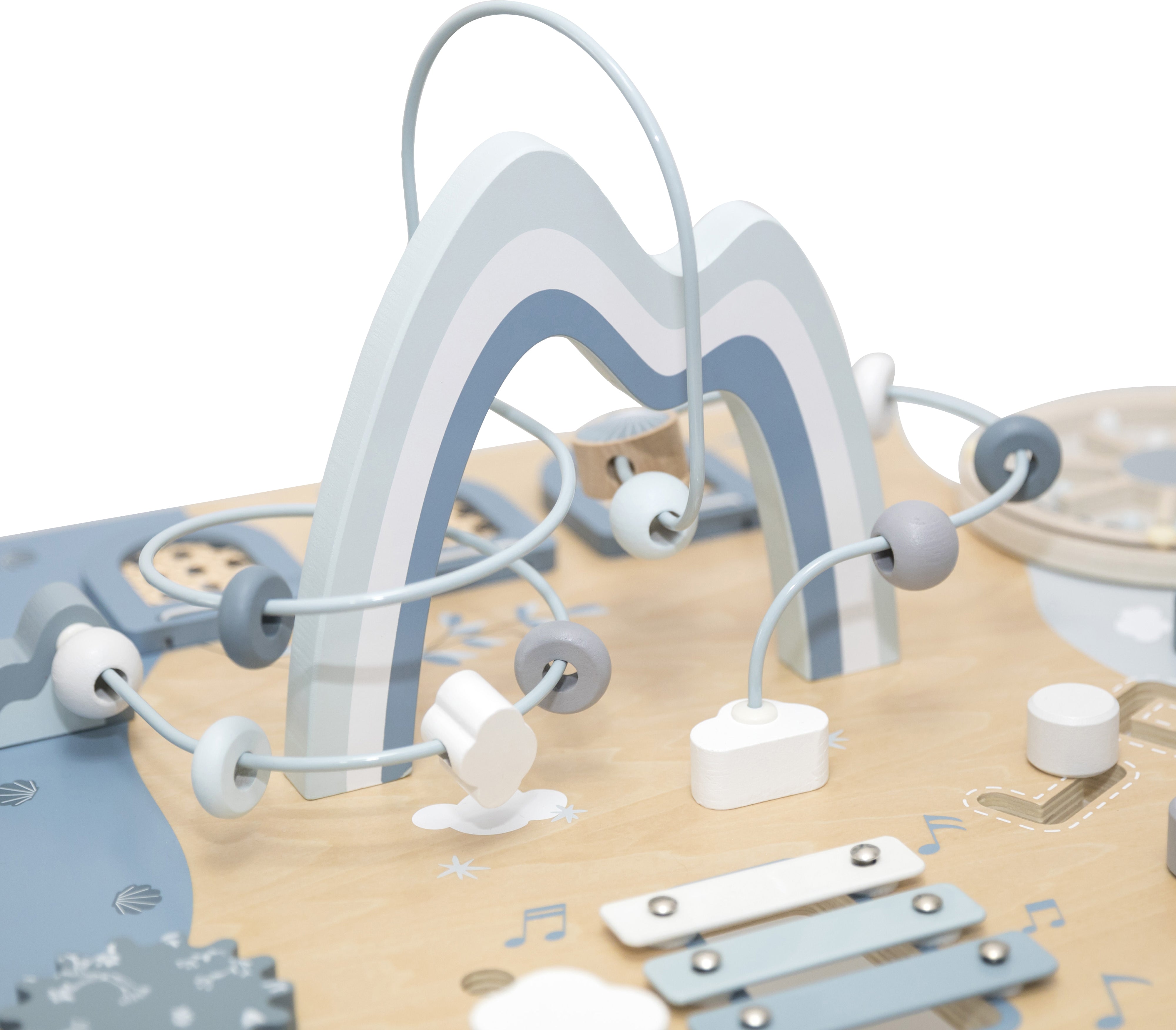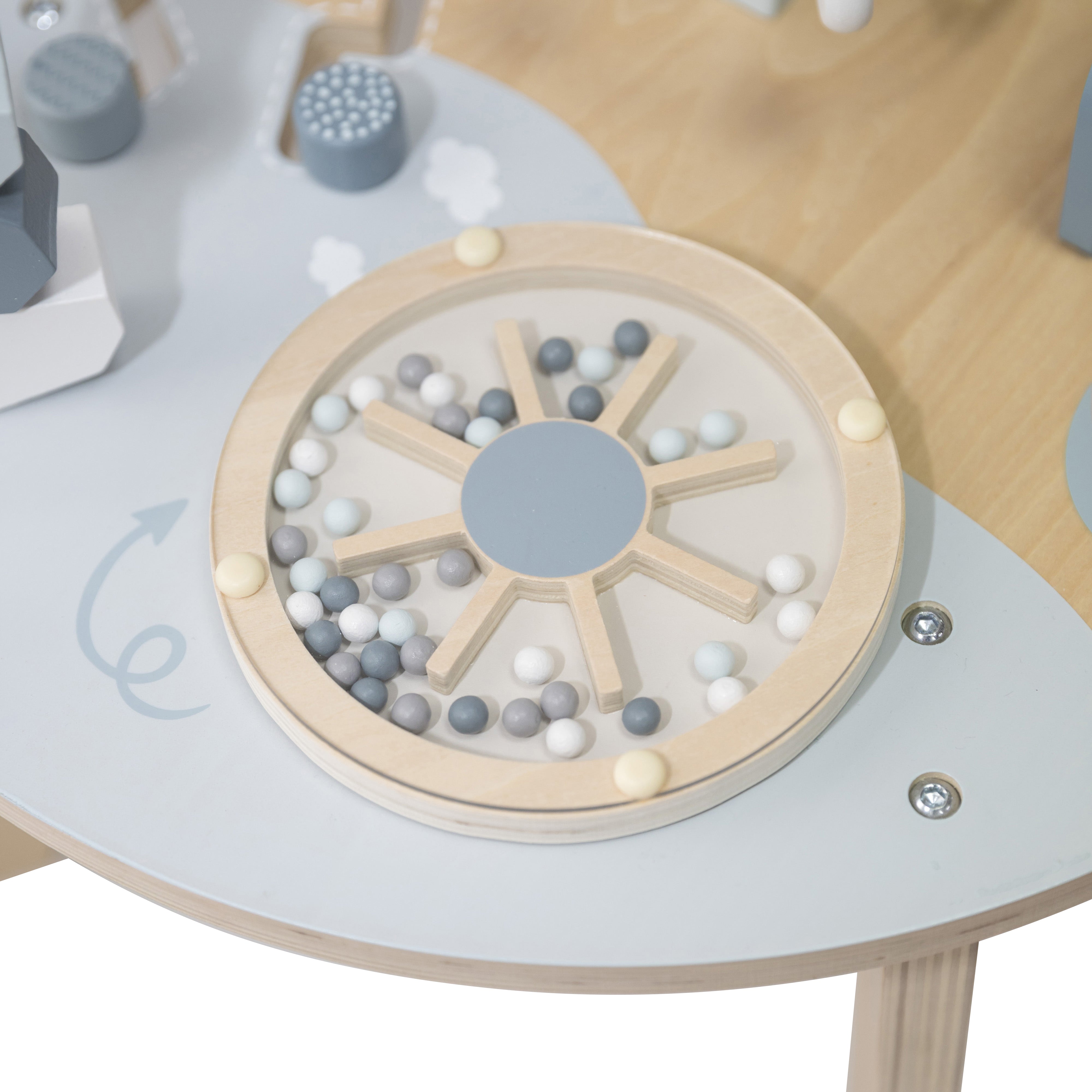 ¡Qué maravillosa mesa de descubrimiento! La mesa de actividades de madera Label Label, está especialmente diseñada para niños curiosos. ¡Llena de elementos interactivos que desafían a tu hijo a agarrar, girar, deslizar y clasificar!