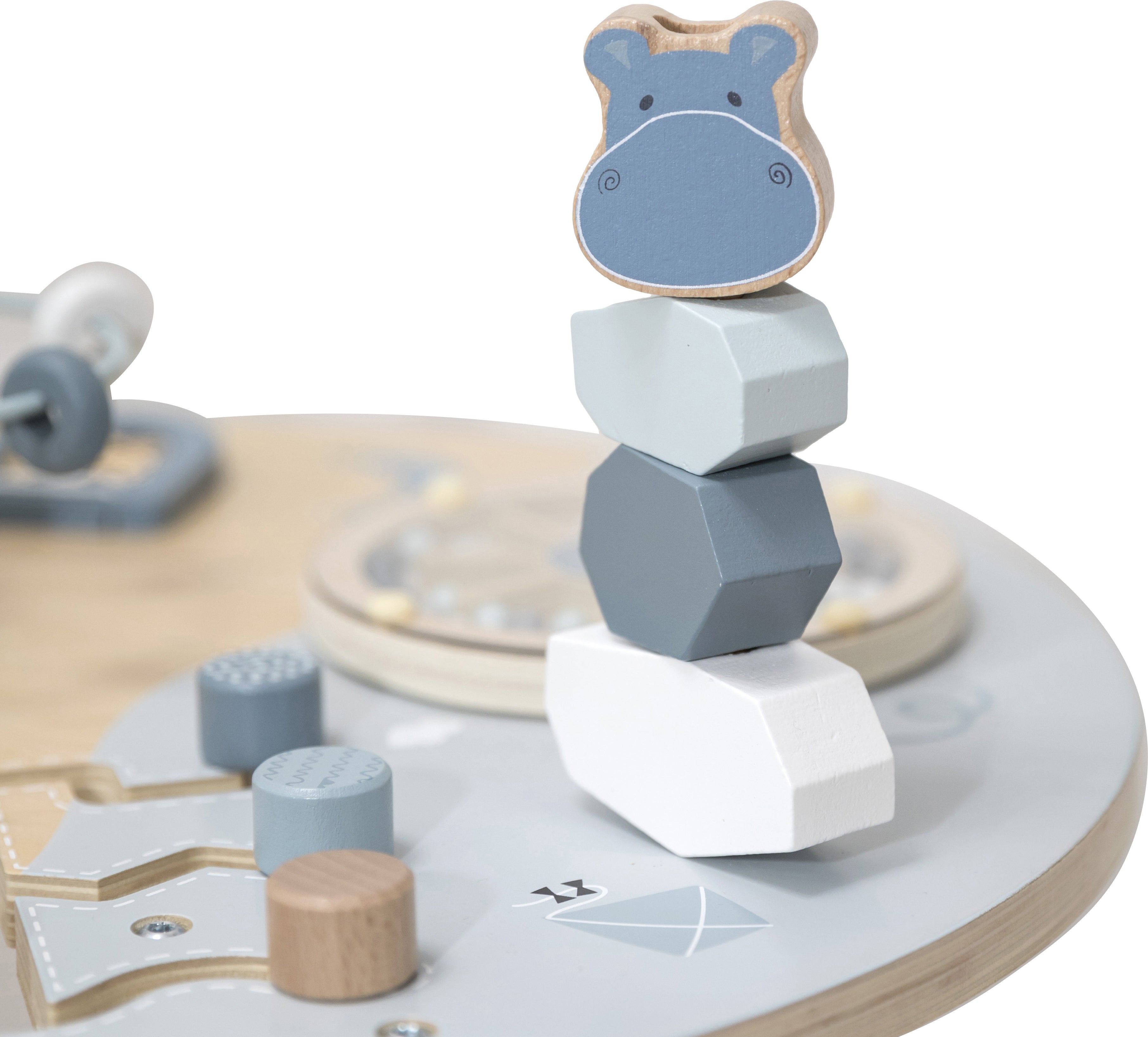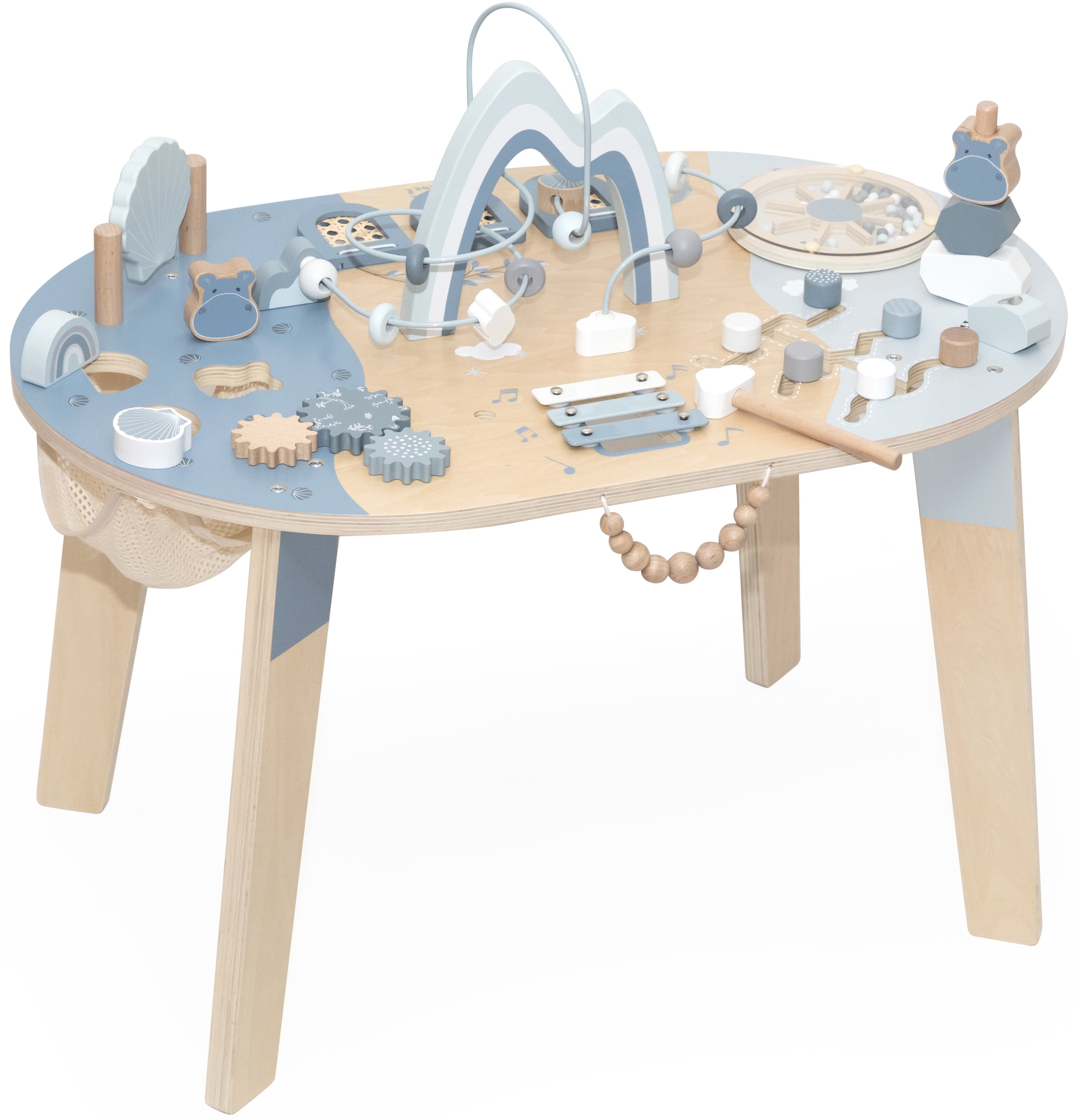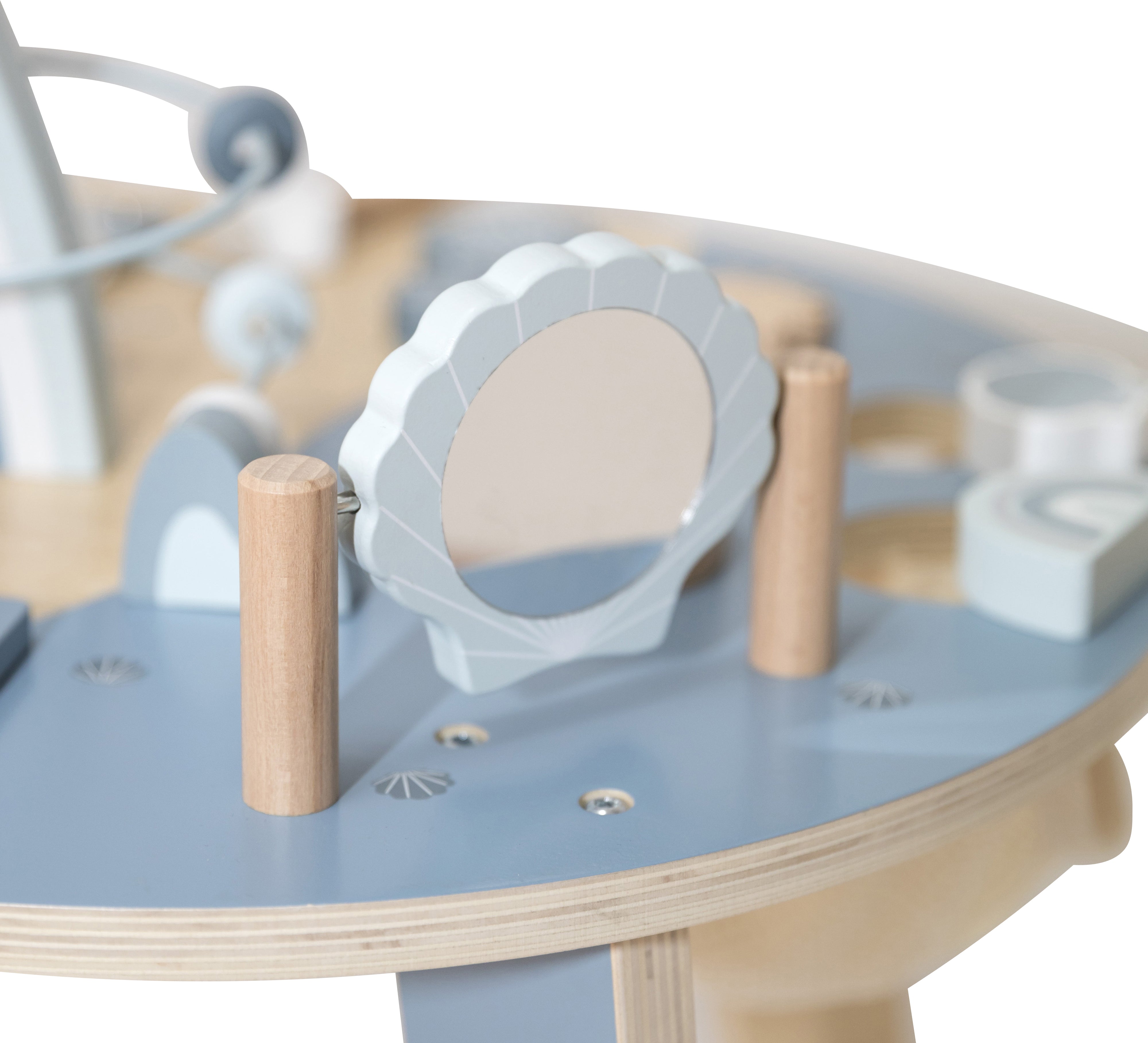 ¡Qué maravillosa mesa de descubrimiento! La mesa de actividades de madera Label Label, está especialmente diseñada para niños curiosos. ¡Llena de elementos interactivos que desafían a tu hijo a agarrar, girar, deslizar y clasificar!