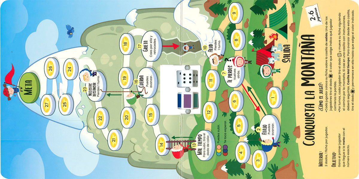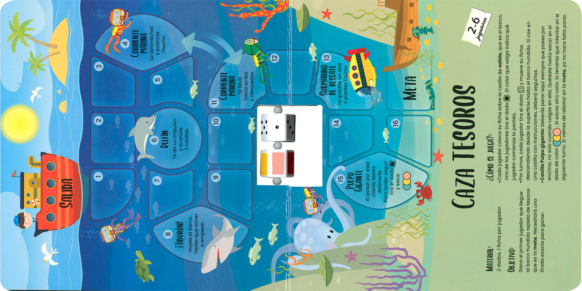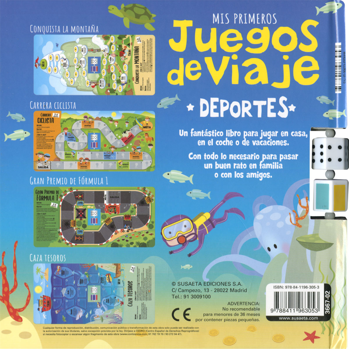 Un fantástico libro troquelado para jugar en casa, en el coche o de vacaciones, estés donde estés. Con todo lo necesario para pasártelo en grande en familia o con los amigos: cuatro tableros con juegos diferentes relacionados con los deportes, dos dados (uno de colores y otro de números) y seis fichas adhesivas reutilizables. ¡Llévatelo contigo a donde quieras!