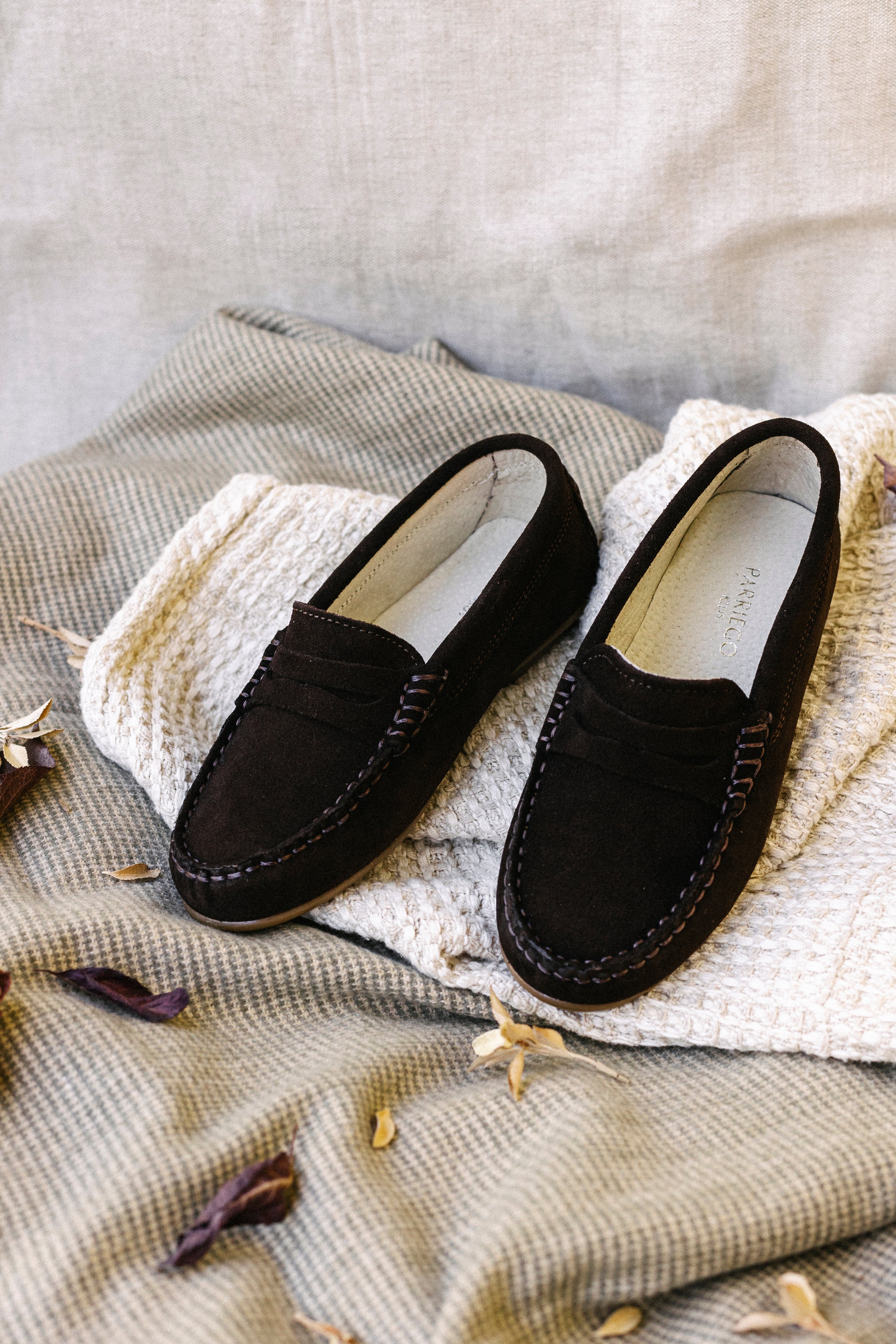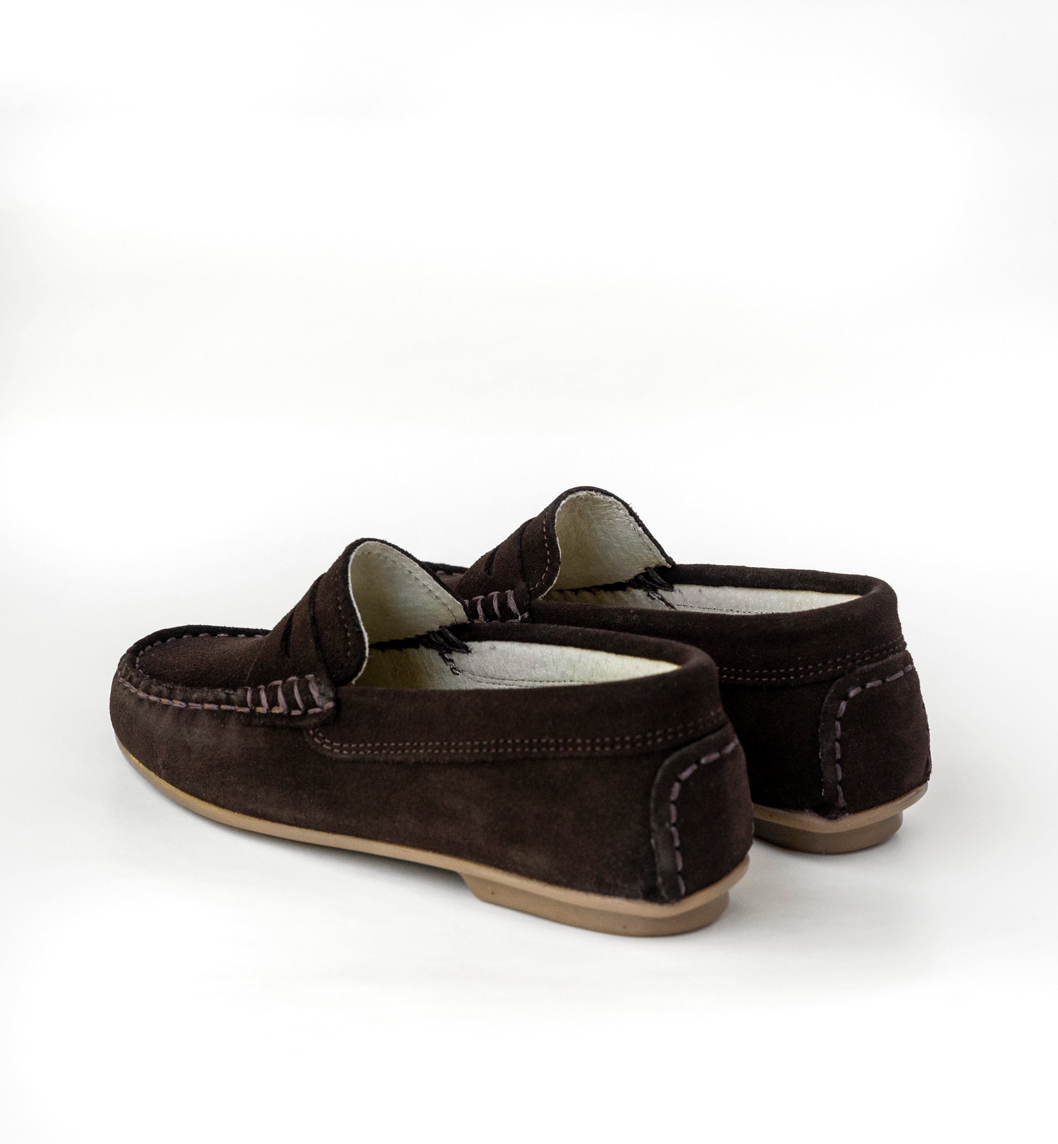 Estos mocasines de piel para niños son un clásico perfecto para vestir. Están fabricados en serraje de color marrón chocolate y tienen suela de goma antideslizante para que sean muy cómodos y blanditos. Estos mocasines de piel para niños son un fondo de armario indispensable para todo niño: su diseño clásico y su acabado en serraje hace que sean muy elegantes, pero al mismo tiempo, al contar con una suela de goma, son mucho más cómodos y resistentes que otros modelos más clásicos, a prueba de todo tipo de superficies y juegos.
