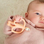 Un divertido mordedor de silicona texturizado que proporciona un alivio calmante para las encías doloridas.