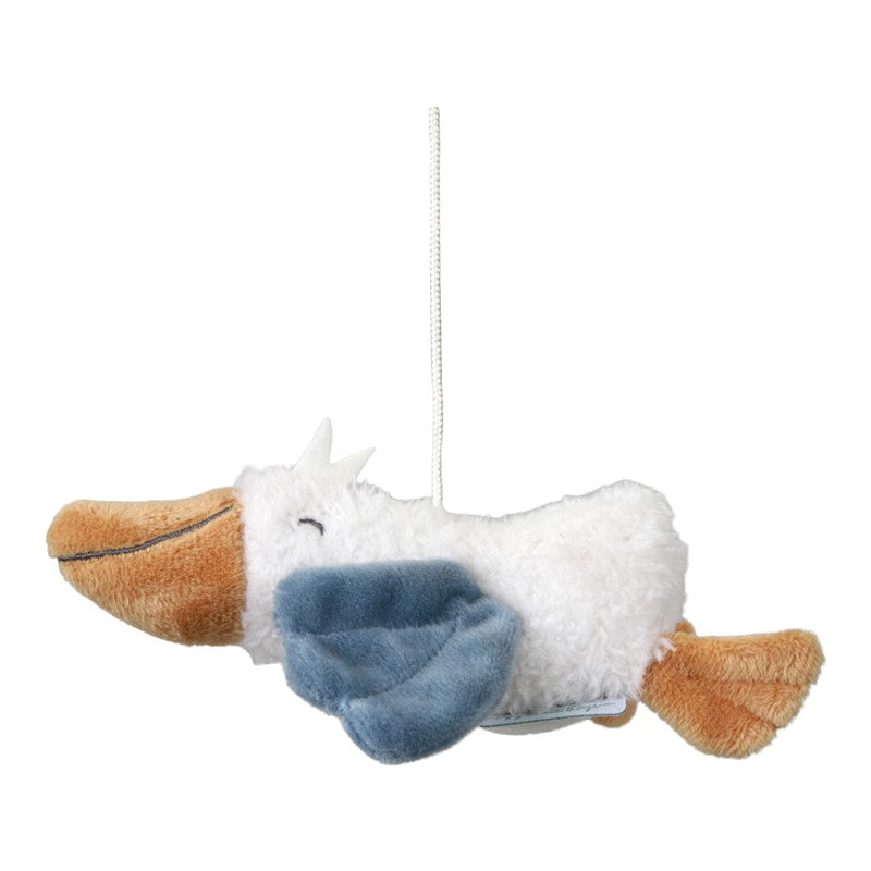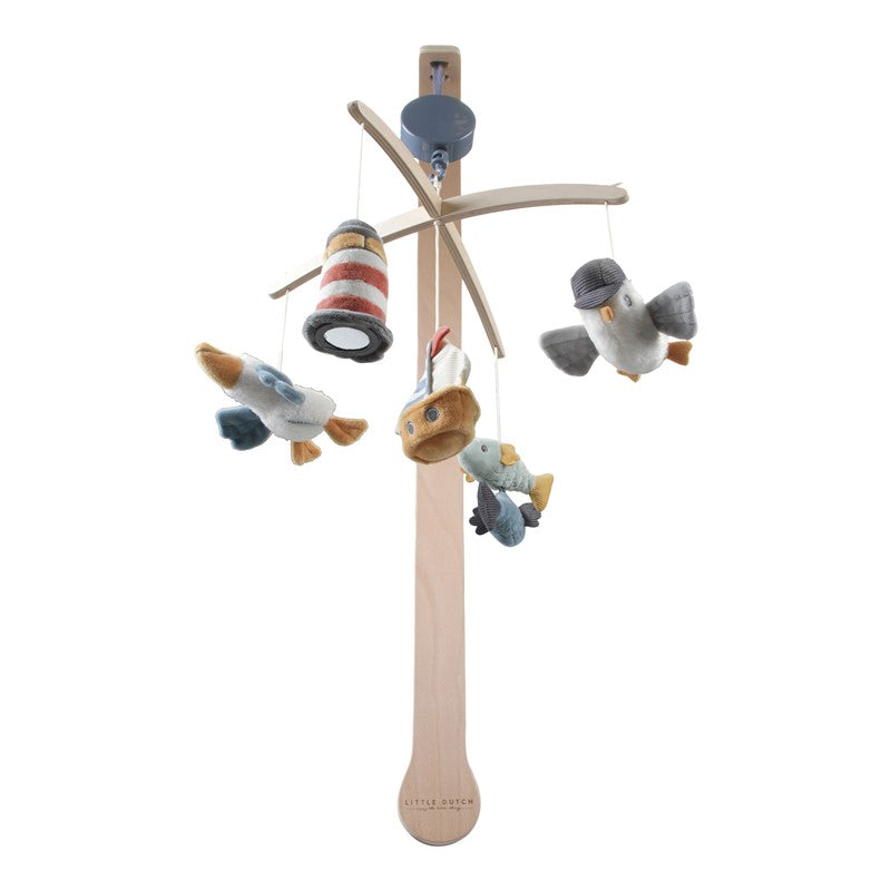 Este lindo móvil musical de madera tiene un efecto calmante en los bebés gracias a su dulce canción de cuna. Cuenta con cinco juguetes diferentes colgantes para mirar desde la cuna de la colección sailors bay, incluida la gaviotaJack, el pelícano Joe, un velero, dos pececillos y un faro de espejo. Los bebés disfrutan escuchando la música en el móvil que estimula su desarrollo visual. El móvil es adecuado desde el nacimiento y se puede sujetar fácilmente a una cuna o un parque.