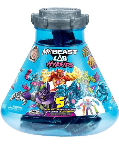 ¡Sumérgete en el laboratorio de MrBeast con el MrBeast Lab Hybrids Pack de 5 Figuras! Este set interactivo permite a los niños realizar experimentos para crear figuras híbridas únicas combinando diferentes piezas.
