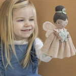 Esta pequeña hada trae buena suerte, con su polvo de hadas que rocía felicidad y sonrisas a tu alrededor. Desde un mundo mágico muy lejano el hada Ella viene a tu casa para traerte suerte con su trébol de cuatro hojas. Ella será tu mejor amiga y te cuidará siempre y en todas partes. Con su vestido rosa, su cabello castaño en un moño, sus alas de hilo dorado y sus zapatos de bailarina, Ella les encantará a todos los niños para jugar y divertirse. Esta hermosa hada estimulará la imaginación.