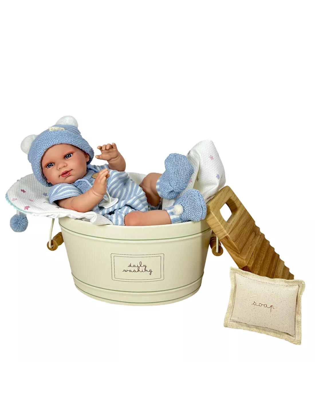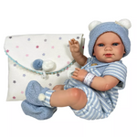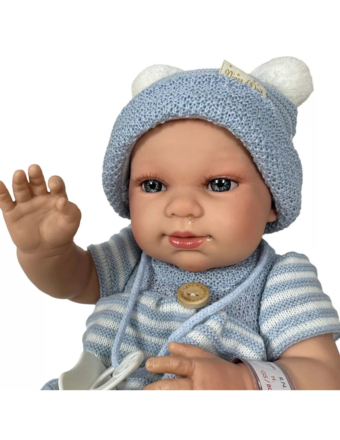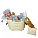 Baby Reborn es un muñeco de 37cm. Su cuerpo es completamente en vinilo, por lo que puedes bañarlo perfectamente. Además, es anatómicamente correcto (está sexuado), en este caso tiene género masculino.