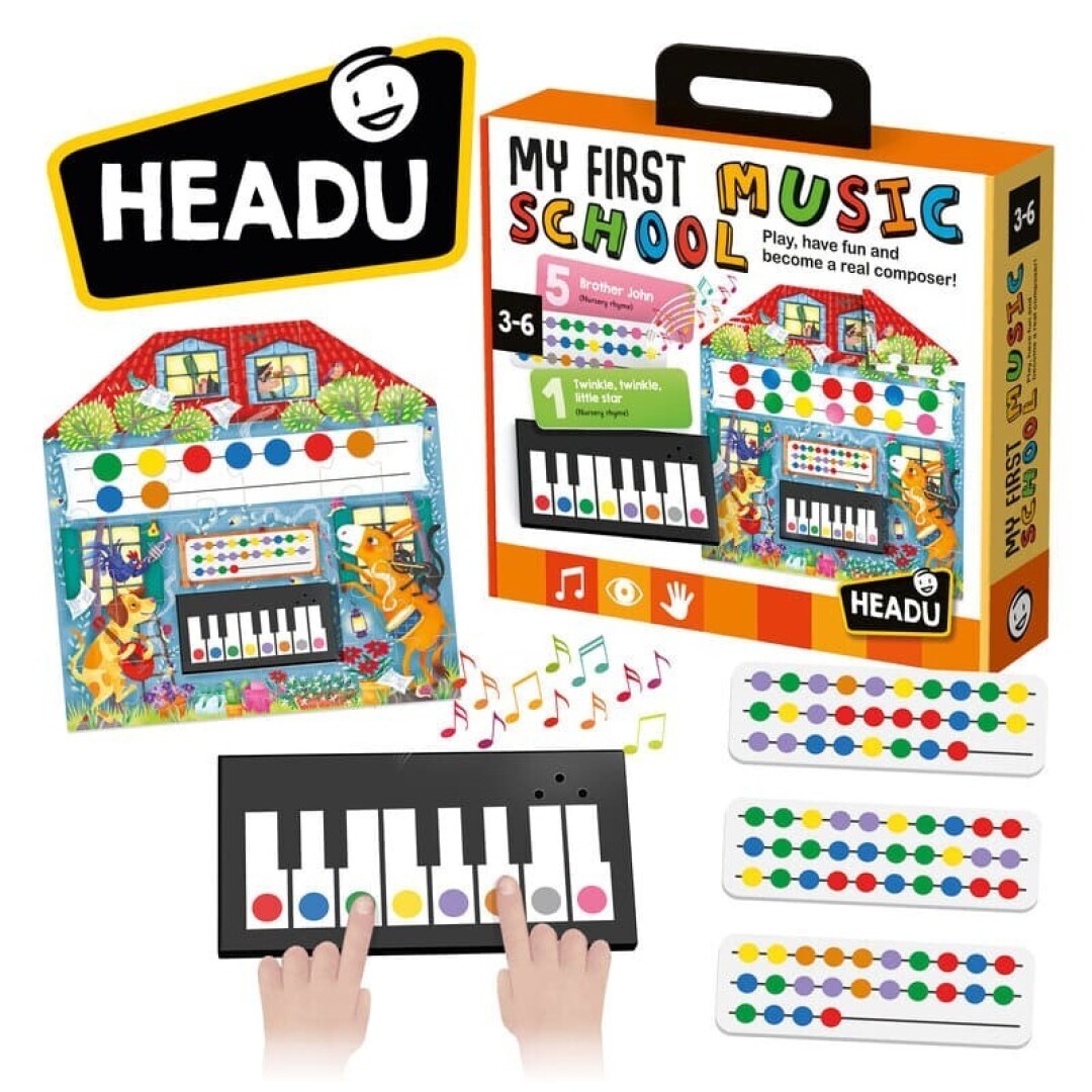 Los niños más pequeños pueden aprender a tocar y componer sus primeras melodías. Con la gran consola-puzzle y el teclado especial, los niños primero tocan melodías prediseñadas y luego pueden inventar otras nuevas utilizando las fichas de notas.