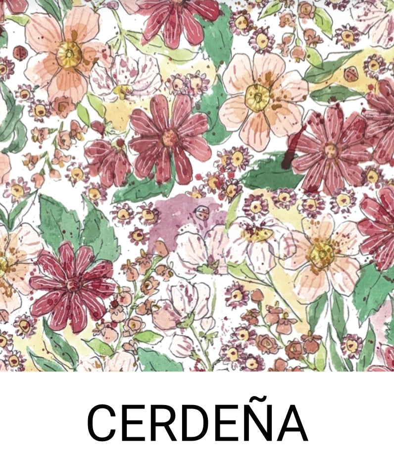 - Cerdeña – con flores en tonos rosas y granates y cuadro Vichy en tono maquillaje