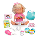¡Nenuco ya puede comer su primera papilla!. Prepara comida de verdad para Nenuco con todos los accesorios incluidos, ponle su babero y dale la papilla con su cuchara biberón y al terminar…¡limpiale la carita y a seguir jugando!. Nenuco Mi Primera Papilla es un Nenuco de 35cm y cuerpo duro tiene un precioso pelo rubio rizado y lleva un vestidito rosa y un lazo en el pelo.