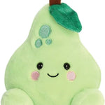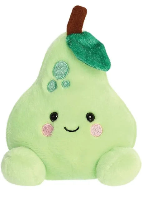 Bartlett Pear es un peluche con un cuerpo suave de color verde pera y una sonrisa encantadora. Tiene un tallo marrón y una hoja verde en la parte superior, además de algunas manchitas adorables que le dan un toque juguetón.