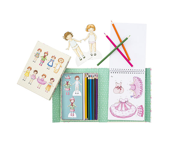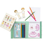 Cada kit está lleno de atuendos y accesorios ilustrados para decorar con pegatinas y lápices de colores. ¡Este kit tiene todo lo que necesitas para darle vida a tu muñeca! Impresiona a tus amigos y familiares completando escenas y agregando tu propio toque creativo. ¡Excelente para diseñadores y niños artistas!