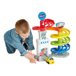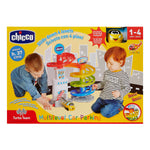 El Parking Turbo Touch de Chicco es un parque de coches de juguete diseñado para los vehículos Turbo Ball de la marca. Cuenta con cuatro niveles y toboganes que permiten a los coches deslizarse hacia abajo. Incluye un coche Turbo Ball, fabricado en plástico.