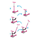 El Micro Mini2Grow es el compañero perfecto para los peques desde los 12 meses. Se puede utilizar en diferentes variantes: con asiento, dos opciones de reposapiés y barra de empuje para los padres y sin barra de empuje, como una mezcla entre bicicleta de equilibrio y patinete, y finalmente como un Mini Micro Deluxe clásico.