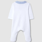 Pelele en punto 100% algodón con aplicación en el pecho en tejido seersucker.