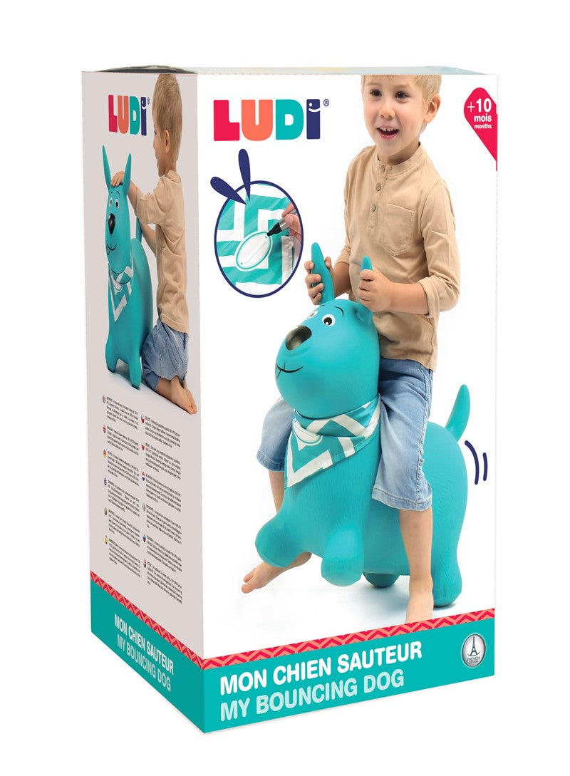 El perro saltarín azul de Ludi es un juguete de rebote diseñado para ofrecer horas de diversión y ejercicio a los niños. Con su forma de perro y color azul vibrante, está pensado para que los pequeños puedan montar y saltar, estimulando tanto su coordinación como su equilibrio. Fabricado en materiales resistentes y seguros, permite un uso continuado sin perder su forma o funcionalidad.