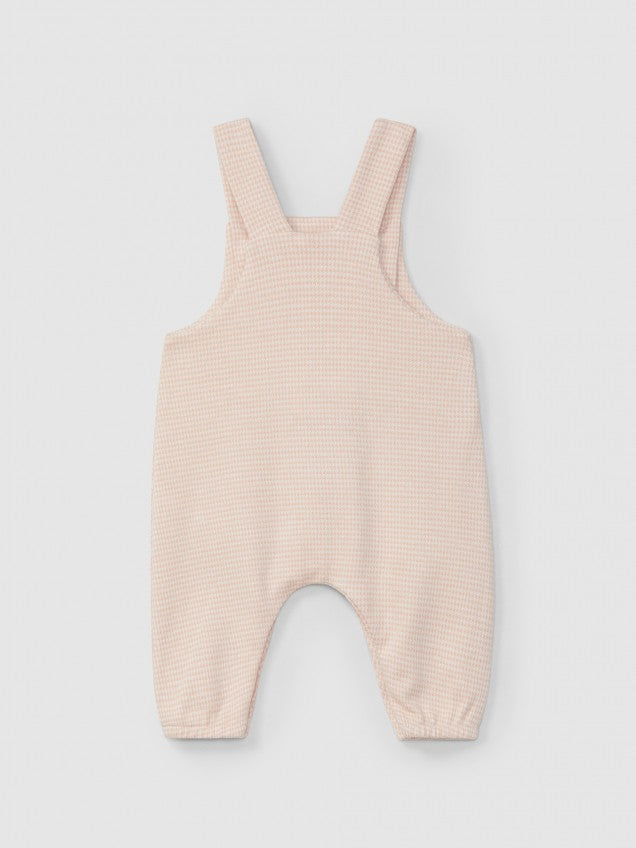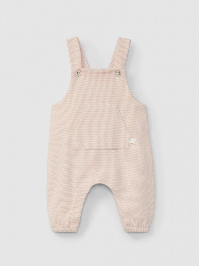 Peto en punto de jacquard de pata de gallo muy cómodo y suave. Detalle de bolsillo funcional al frente. Cierra con botones en los tirantes en dos posiciones para mayor durabilidad y broches en la entrepierna hasta los 12 meses.