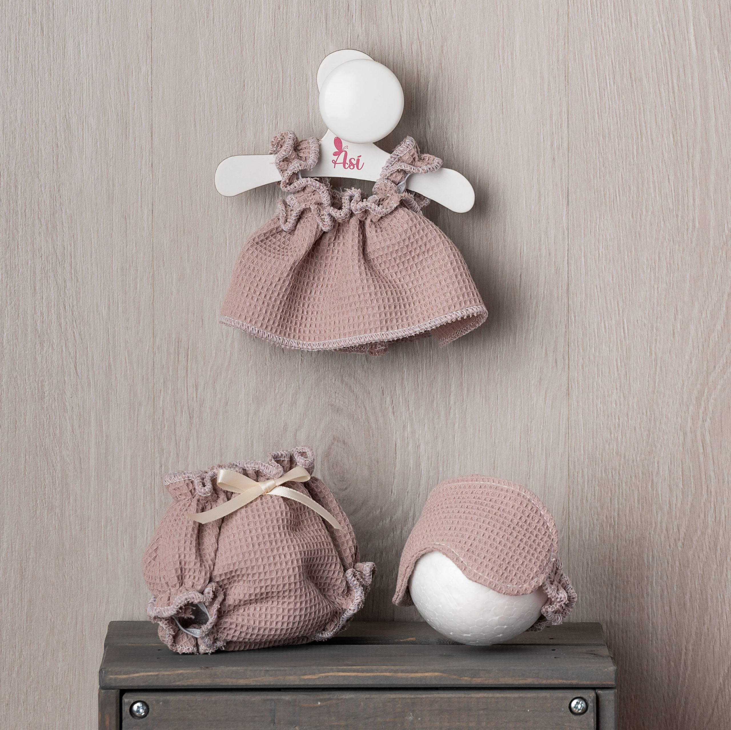 Pijama de tirantes para muñeco de 36cm en color nude, ¡incluye antifaz!