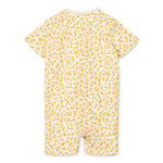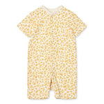 Pelele de pijama estampado suave como la seda, el pelele de pijama de Bilbao tiene mangas cortas y piernas, y es ideal para días más cálidos. Jersey de algodón orgánico suave con un poco de elastano lo hace suave y elástico y los botones a presión de arriba a abajo agregan flexibilidad al ponerse y quitarse.