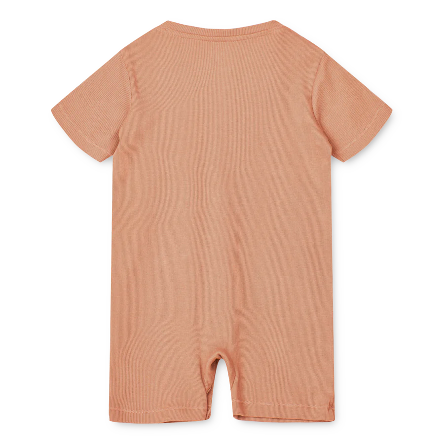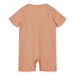 El suave tejido de algodón orgánico con un poco de elastano lo hace suave y elástico y los botones a presión de arriba a los pies agregan flexibilidad al ponérselo y quitárselo.