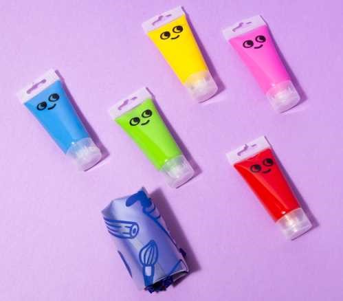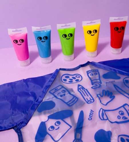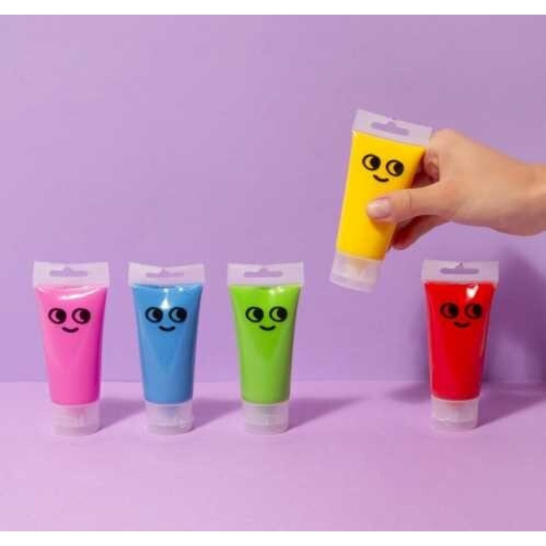 Kit de 5 tubos de pintura al agua suave y cremosa, de fácil manipulación y aplicación con los dedos.