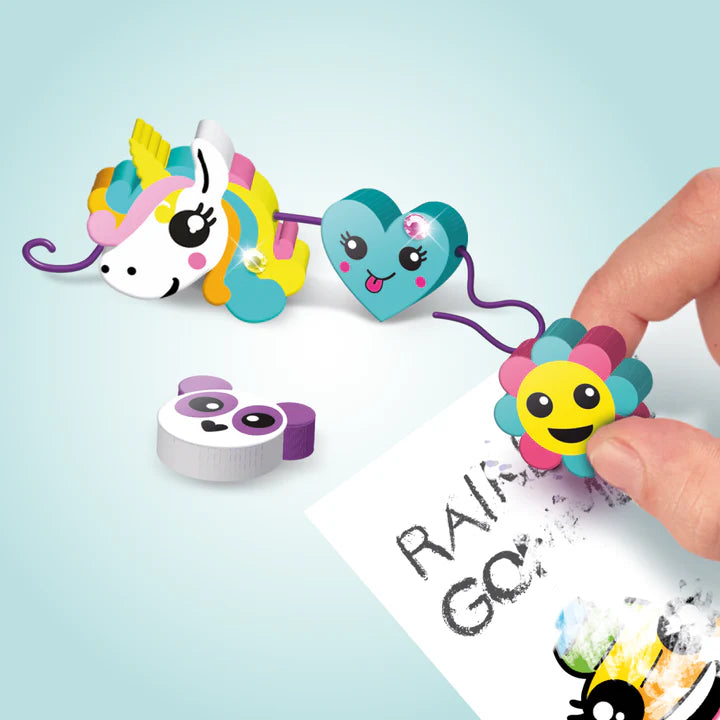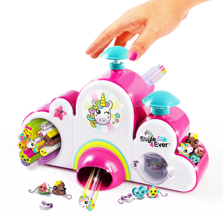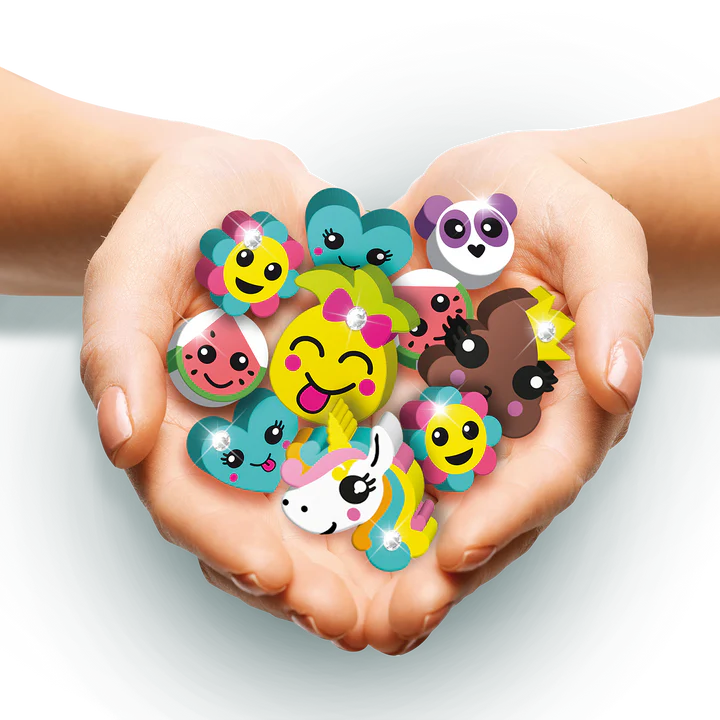 Super Trendy, ¡Crea tus pulseras, collares y colgantes con el Super Taller de Gomijoyas! ¡Crea más de 150 gomas de borrar y personalízalas con gemas! Además, ¡tus gomas de borrar se convertirán en auténticas joyas para coleccionar!