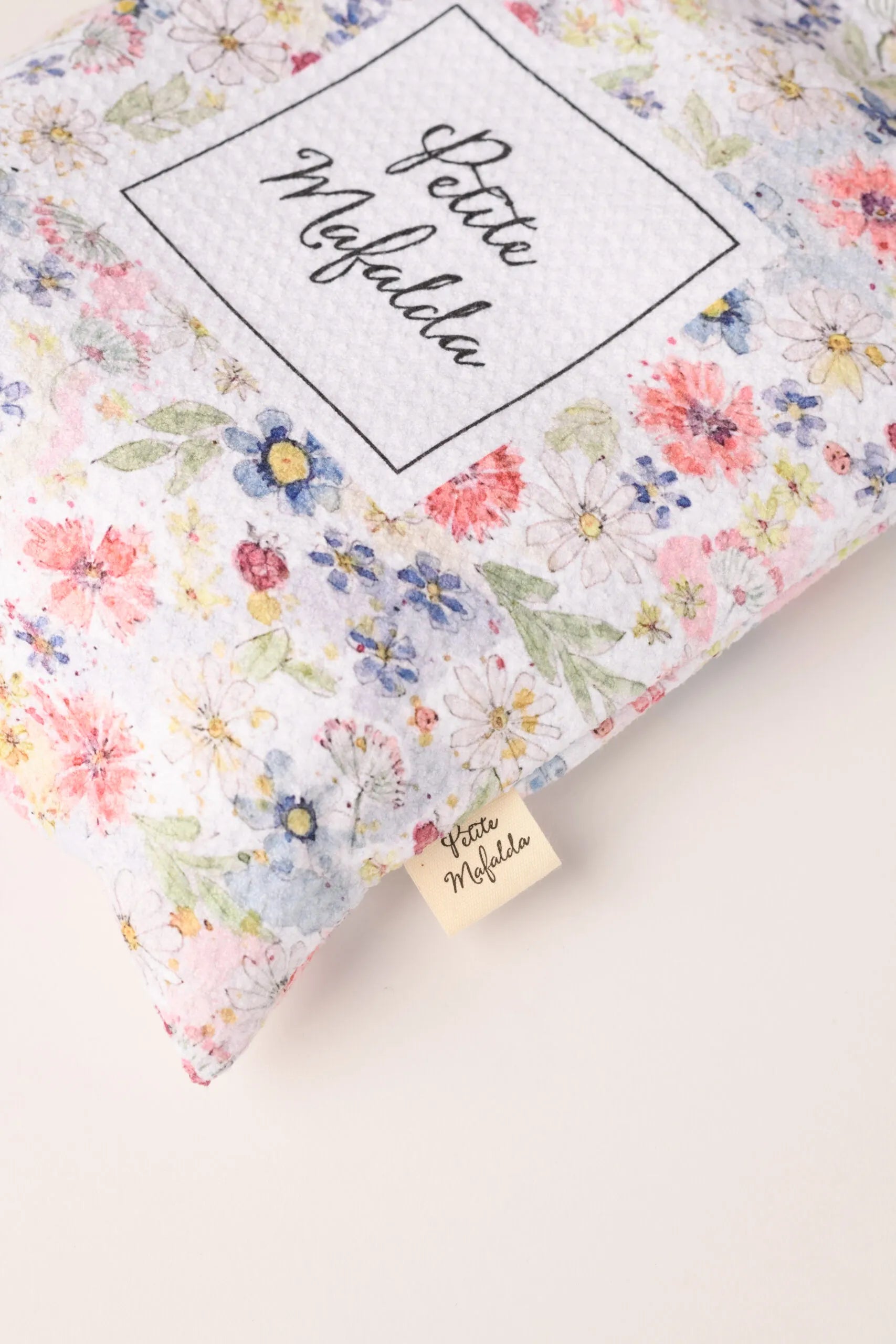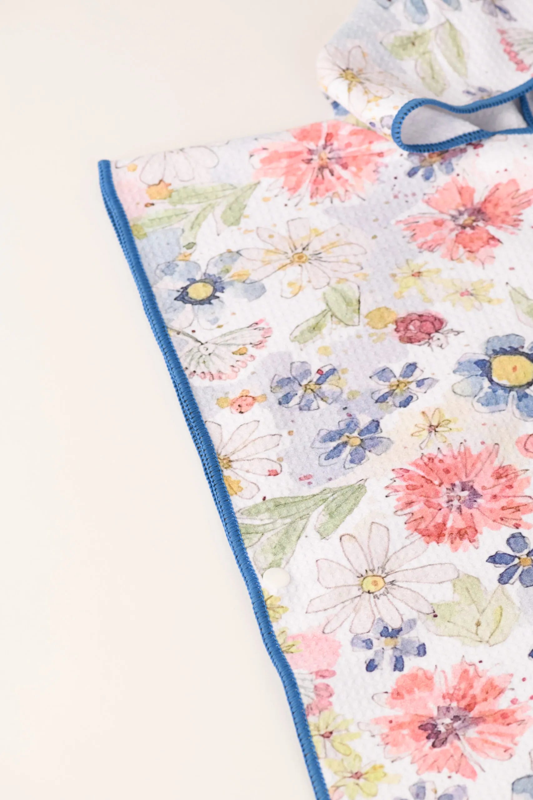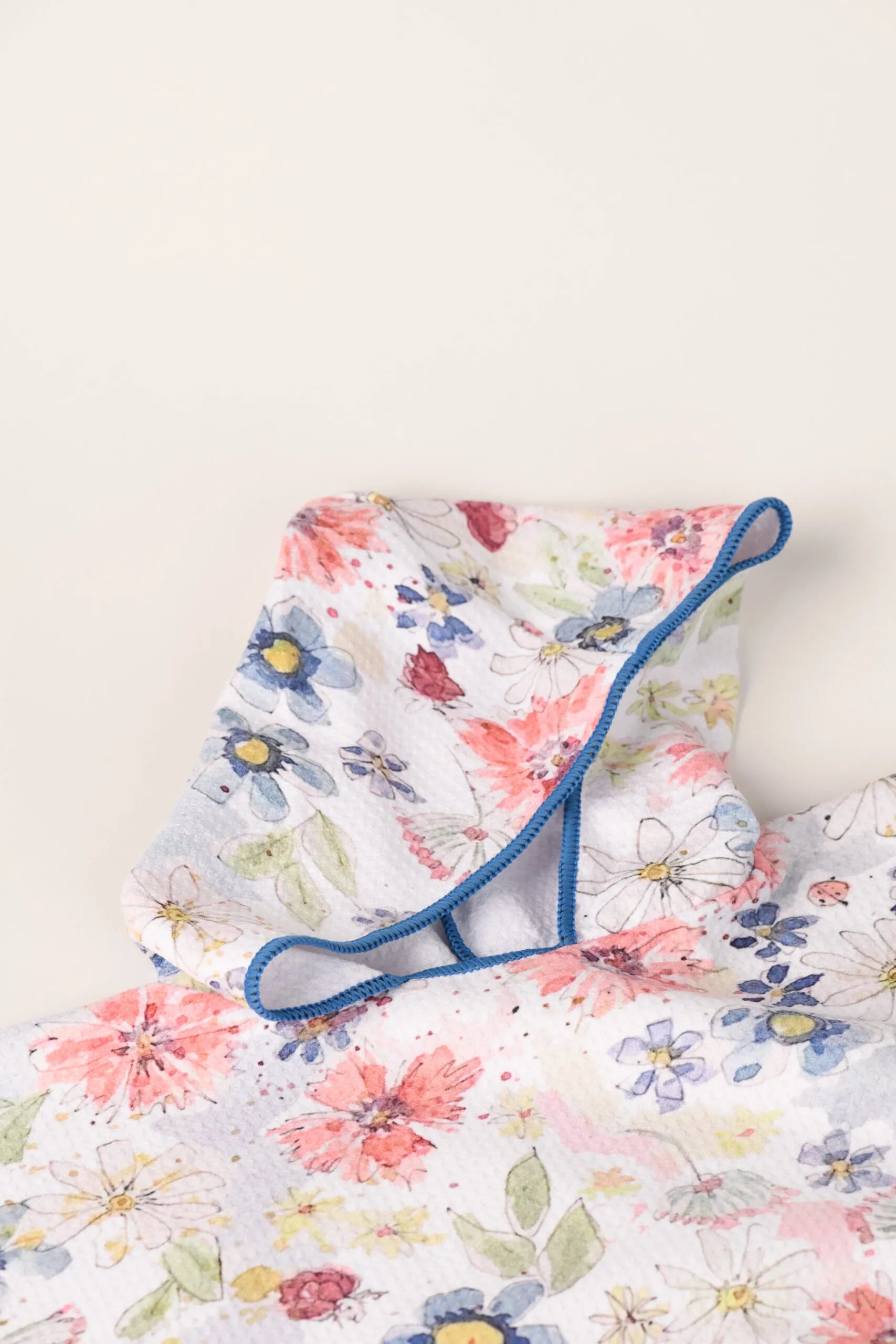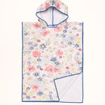 Poncho de microfibra de tejido waffle con estampado de flores para que lleven los niños a la playa o la piscina.