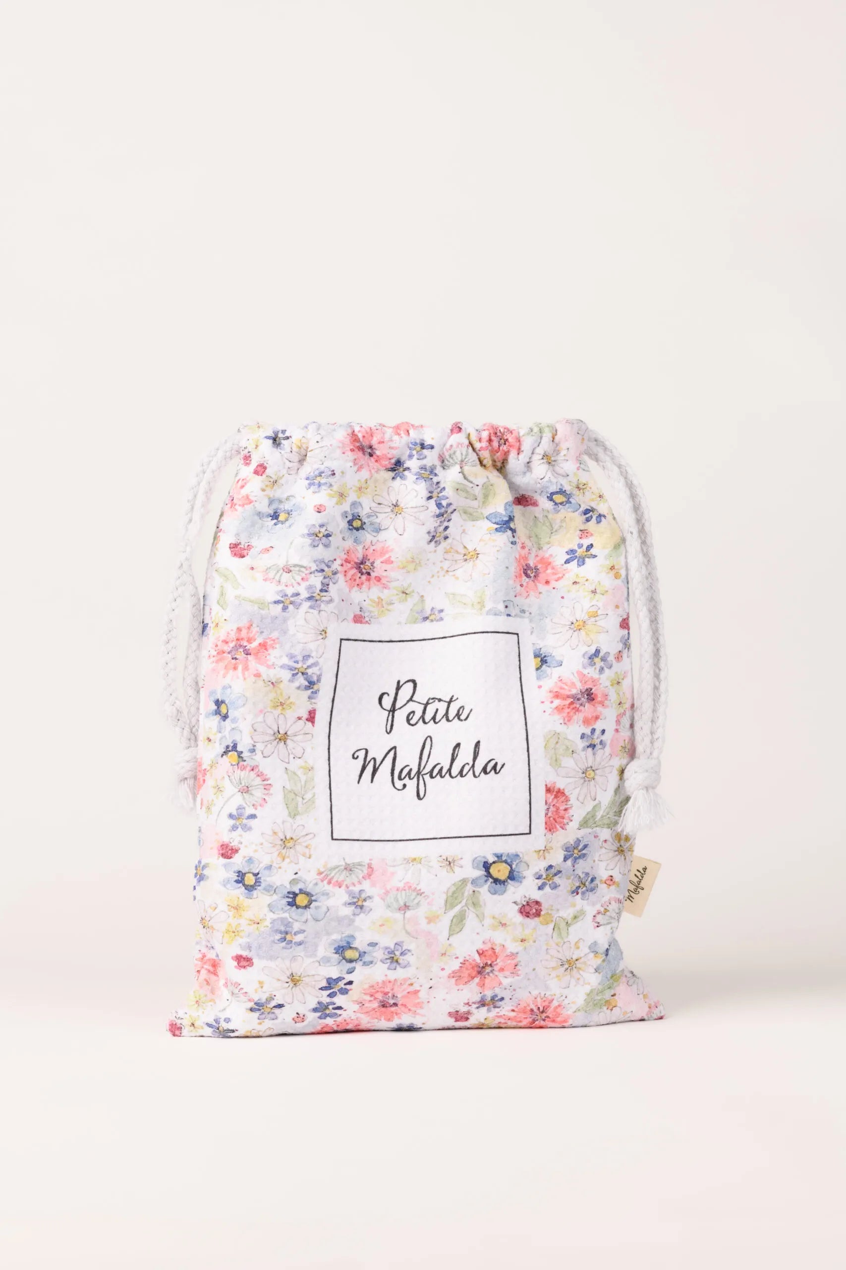 Viene con una bolsa para guardarlo a juego, confeccionada con el mismo material.