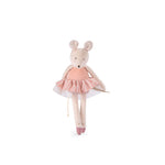 Descubre a la ratita Rosa de la colección La Petite École de Danse de Moulin Roty, una muñeca de peluche de 30cm, con una carita dulce bordada, mejillas delicadamente empolvadas, vestida con su falda rosa, y con la panoplia completa de bailarina.