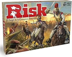 Juego de mesa de estrategia y conquista. Los jugadores incrementan sus ejércitos, mueven tropas y libran batallas para conquistar territorios. El resultado de los dados determina el éxito en los enfrentamientos. Incluye elementos de traición, alianzas y ataques sorpresa. El objetivo es completar una misión secreta, que se revela al mostrar la Carta de Misión Secreta. Incluye dados y cinco ejércitos en baúles de guerra.