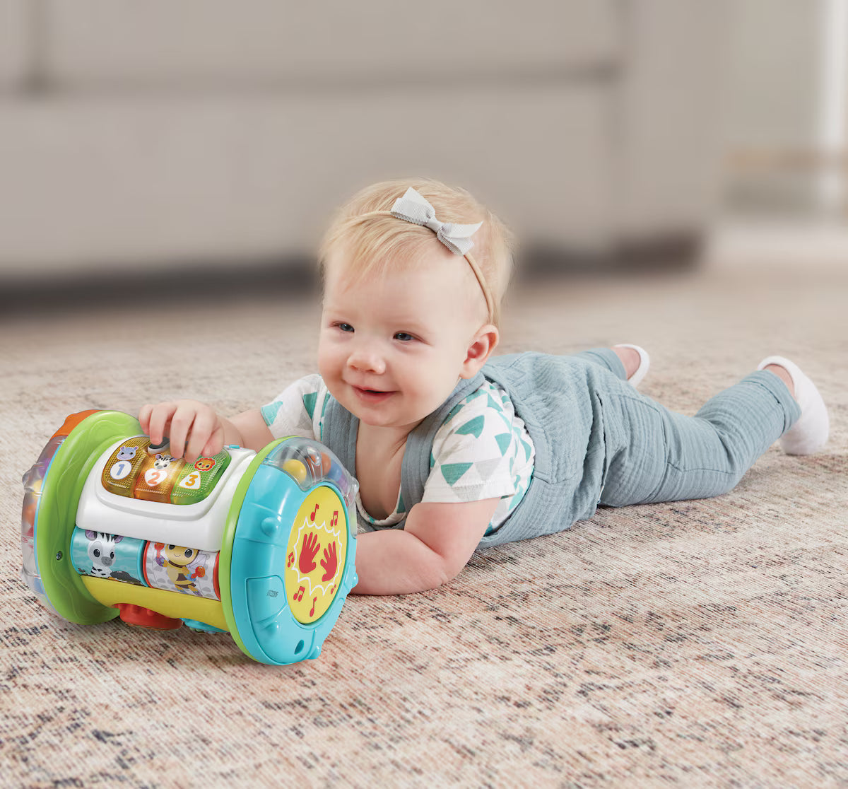 Con 3 botones LED de colores y un botón de tambor que activan divertidas frases, canciones, melodías y sonidos.