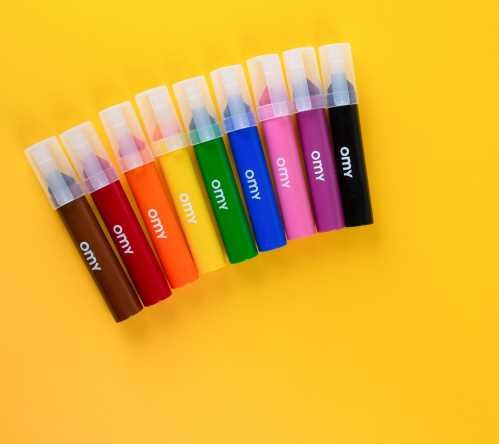 -9 rotuladores de fácil sujeción con puntas gigantes, perfectos para colorear y dibujar en grandes superficies (grosor de trazo: 2-12 mm).