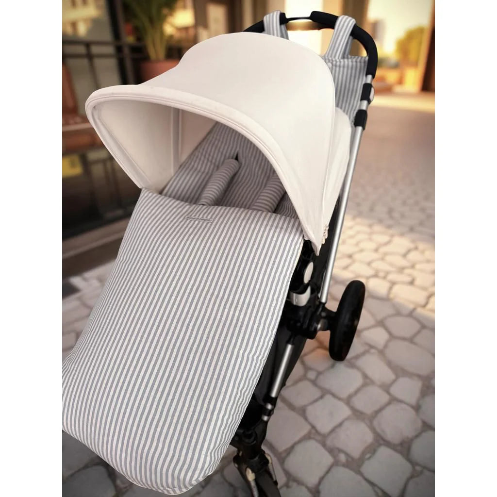 Saco universal para sillita. Interior de suave y cálido pelito aterciopelado de algodón en color crudo. Exterior mismo tejido que nuestros Maxis y Minis. Relleno efecto pluma. Ojales céntrales y laterales para los cinturones. Cierre con cremallera. Queda sujeto a la silla perfectamente por sus dos puntos de anclaje superior e inferior.