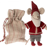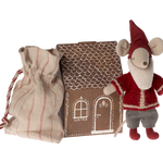 Conoce a este ratón hermano mayor vestido con ropa clásica de Papá Noel. Vive en una casa pequeña y tiene un saco para todos los regalos que entregará la noche de navidad. Cabe en la casa grande de pan de jengibre y se puede deslizar por la chimenea.