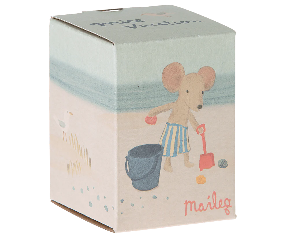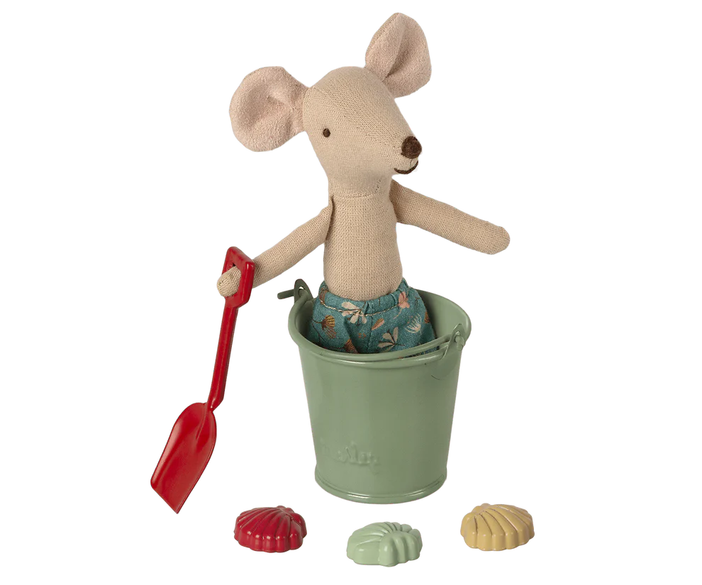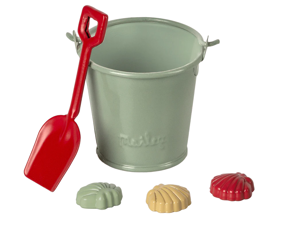 Tiempo de vacaciones. El juego perfecto para la playa. Se incluyen un cubo, una pala y un juguete de arena en miniatura.