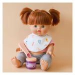 El set incluye una cuchara mágica y un tarro de gelatina de uva. La cuchara está especialmente diseñada para introducirla en el tarro, pues incluye comida que desaparece como si tu muñeca se lo hubiera comido.