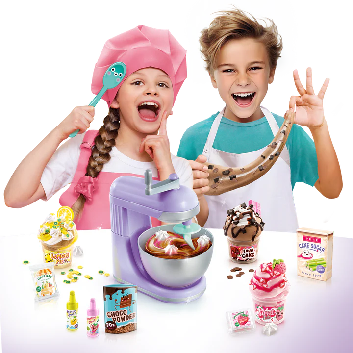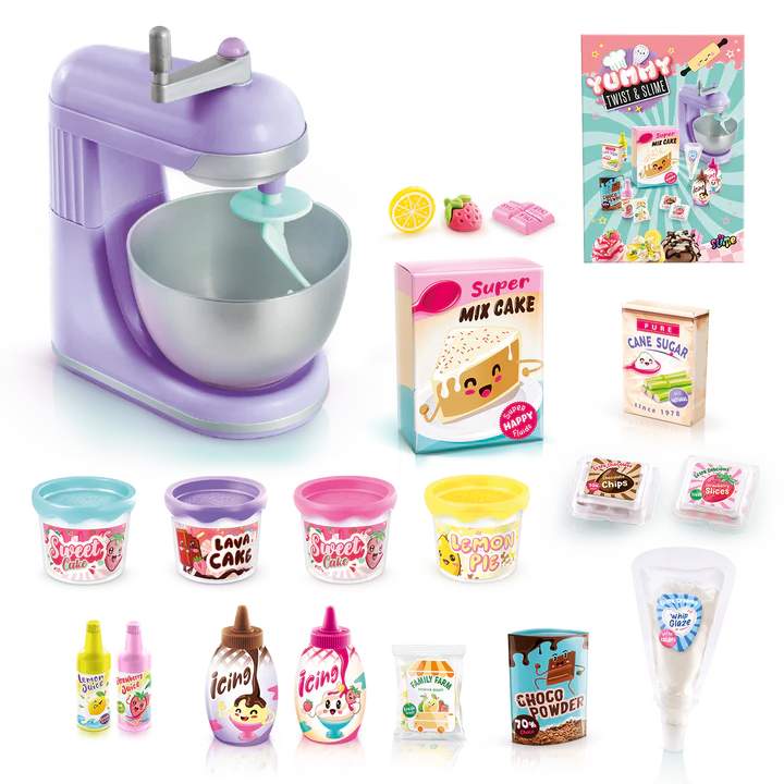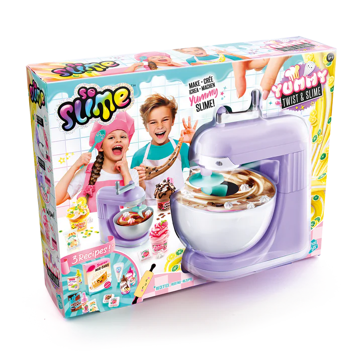 ¡Un mezclador de slime para crear tus slimes como un auténtico profesional! Incluye una guía de recetas para que puedas crear slimes realmente únicos. Pon tu slime en la batidora, añade colorante y decoraciones y ¡mira cómo se mezcla!