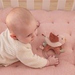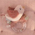 ¡Sujeta, gira y agita! Este sonajero con forma de pajarillo es un juguete divertido que disparará la curiosidad de tu bebé. Aletea sus rosas alas de pana o frota su suave barriga.