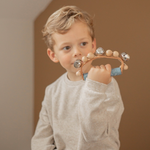 ¡Deje que los niños disfruten sosteniendo y agitando este sonajero de madera Label Label! Las campanas crean todo tipo de sonidos divertidos, lo que convierte a este sonajero en el juguete musical ideal para jóvenes músicos en ciernes.