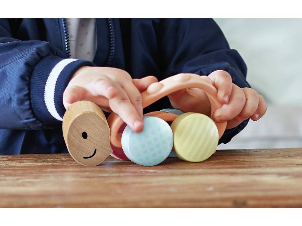 ¡Lleva a tu linda tortuga turbo a dar una vuelta por la sala de estar! ¡Con ruedas brillantes, coloridas y estampadas y un asa de empujar / tirar / transportar hecha de silicona que es 100% segura de masticar!